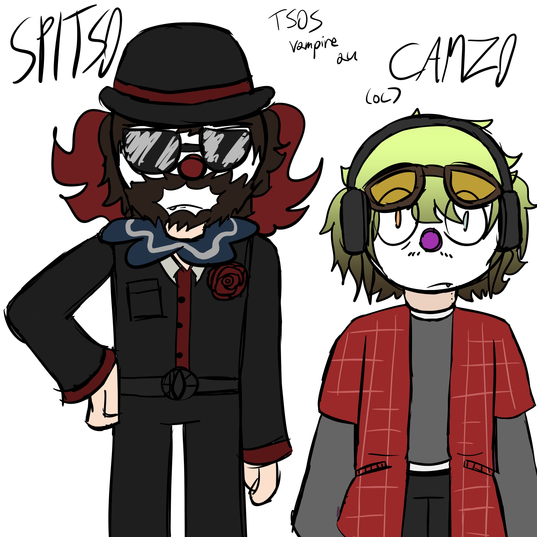 Some stuff I've made this month :ow also the person on the right of SPITS0 is CAMZ0 (my tsos yumesona) The design is kinda outdated bc I tweaked his hair but I'm not gonna draw him again rn